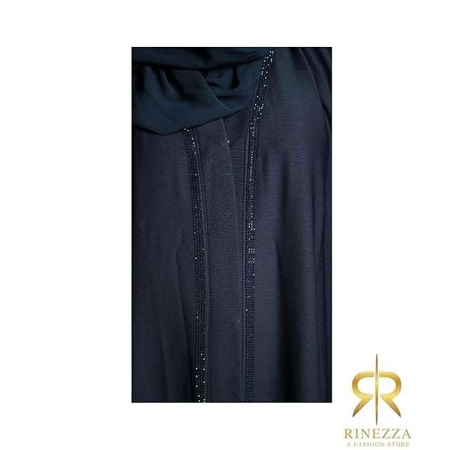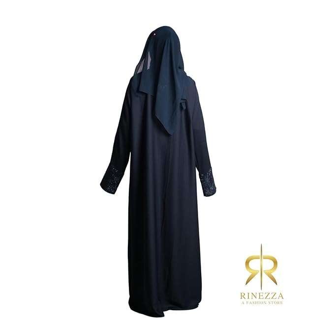 RINEZZA Elegant Black Abaya, Dubai Style, Embellished Sleeves with Crystal Details, Full Length Islamic Burkha with Dupatta, Free Size 1,999.00 Save:1,000.00(33%)
